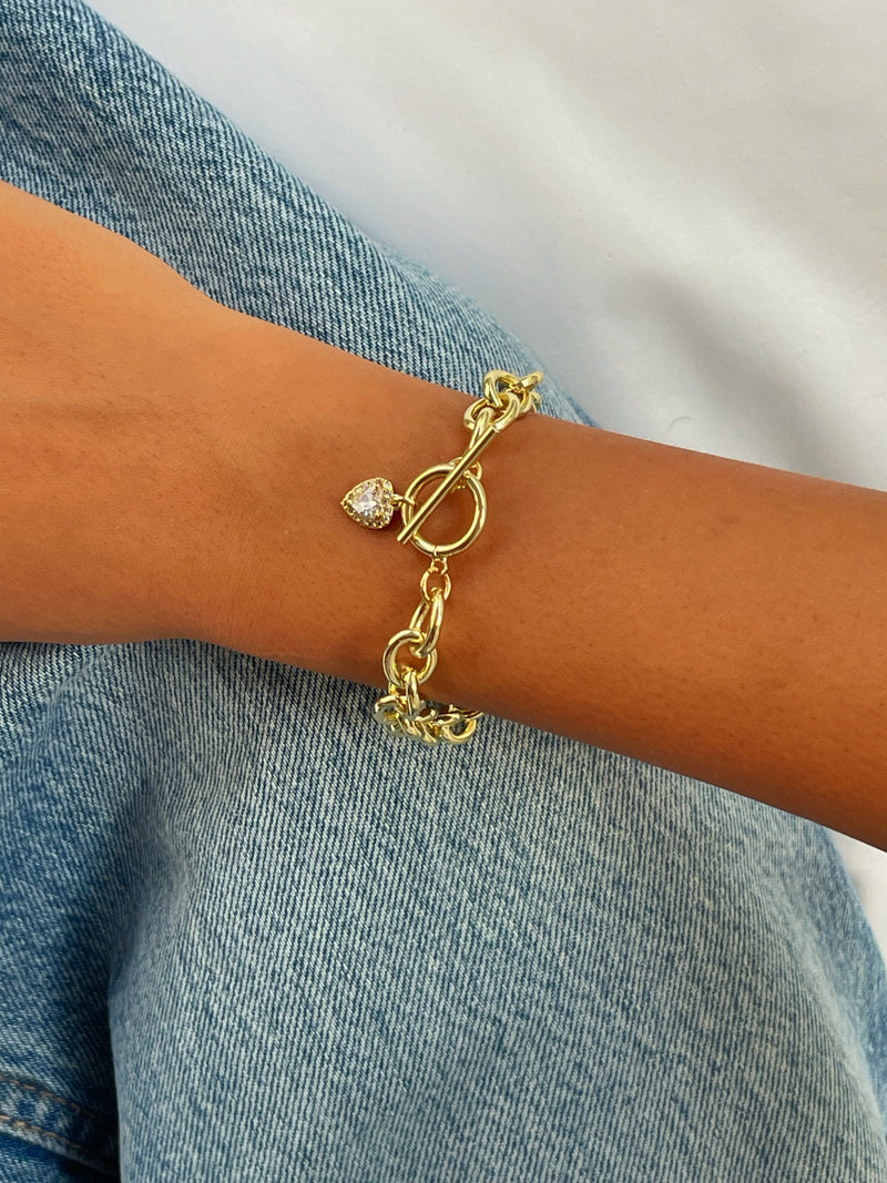 צמיד לולאות אבן לב משובץ