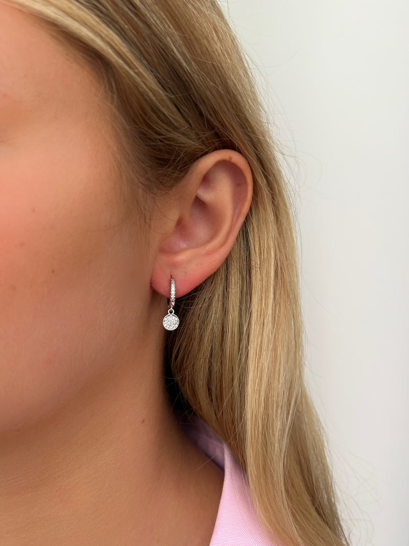זוג עגילי חישוק עיגול משובץ