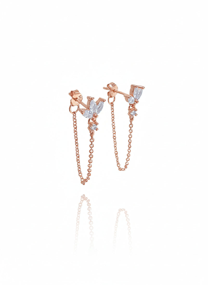 זוג עגילי פרח לוטוס בל שרשרת עדין מכסף אמיתי 925
