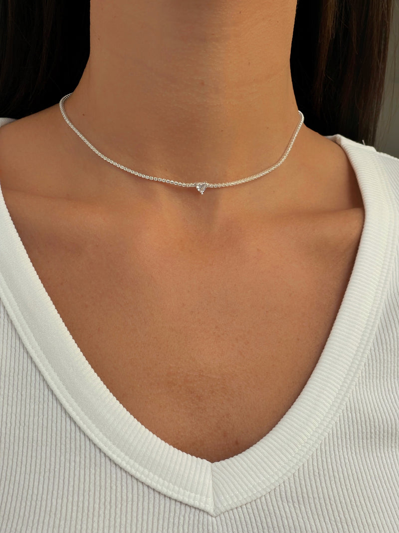 צ'וקר טניס לב מכסף אמיתי 925