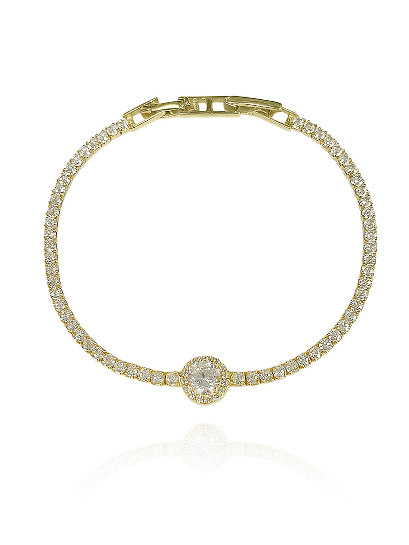 צמיד טניס אבן מרכזית מכסף אמיתי 925