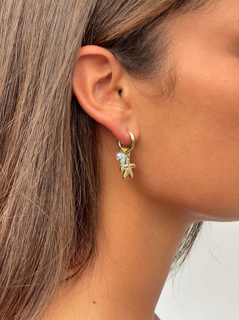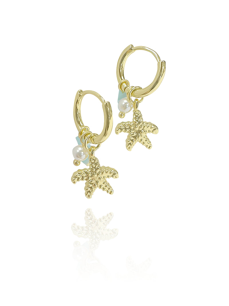 זוג עגילי חישוק כוכב ים בשילוב חרוזים