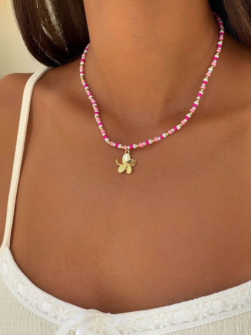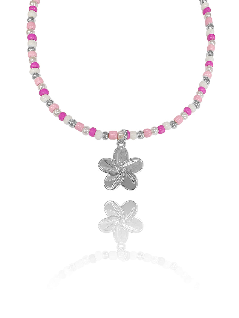 שרשרת חרוזים ורודים פרח