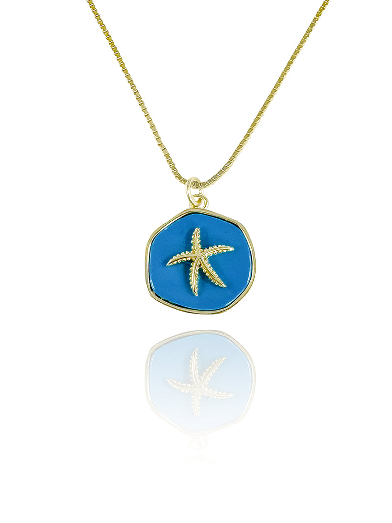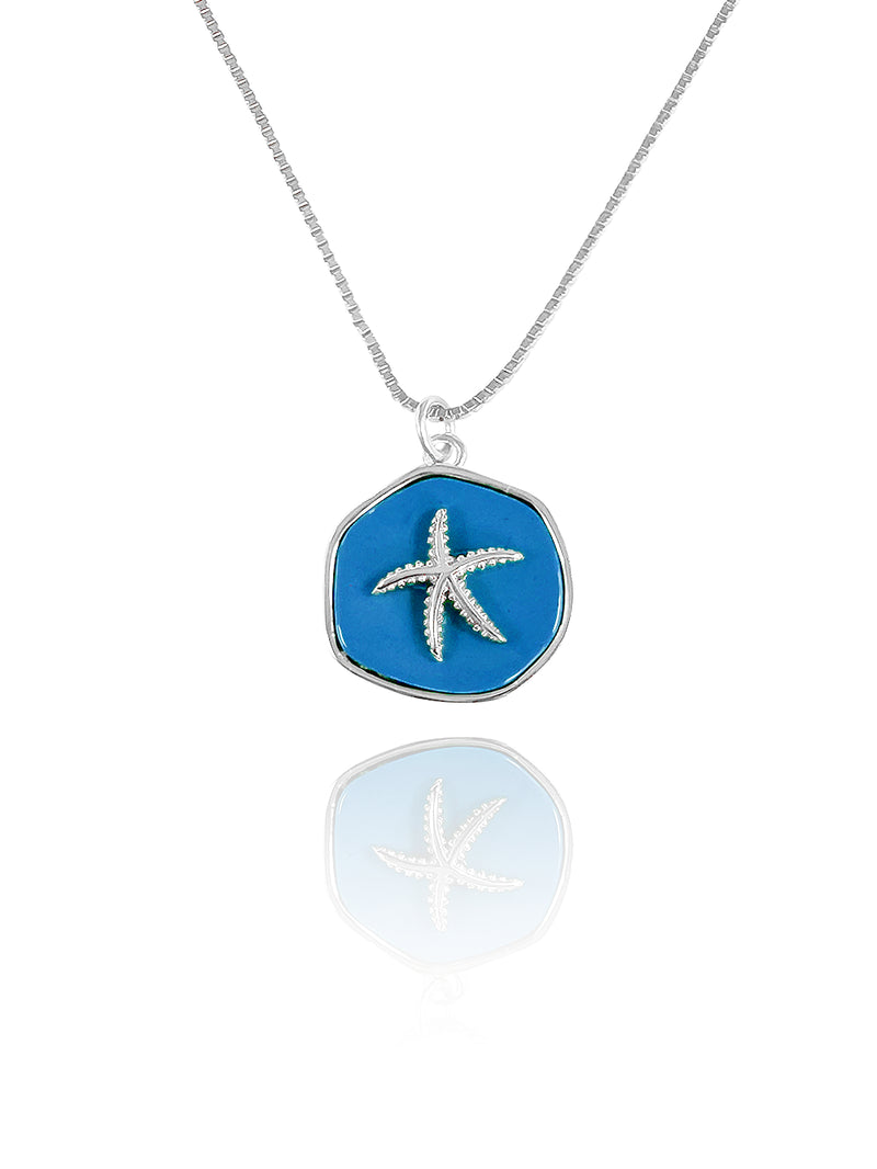 שרשרת כוכב ים רקוע כחול מכסף אמיתי 925