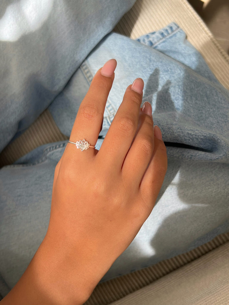 טבעת לוטוס עדינה מכסף אמיתי 925