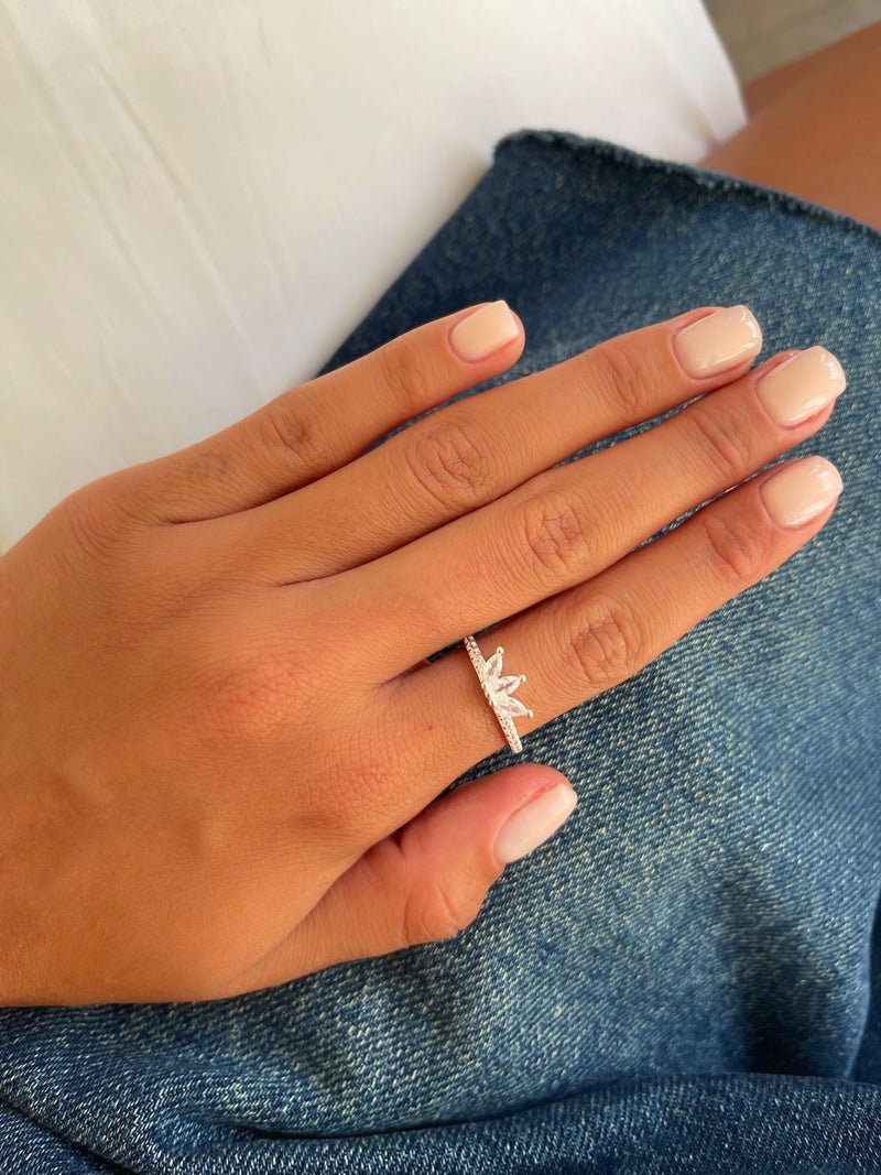 טבעת פס פרח לוטוס מכסף אמיתי 925
