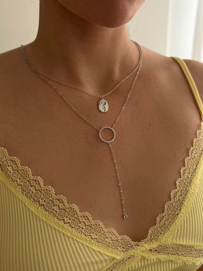 שרשרת עיגול נופלת מכסף אמיתי 925