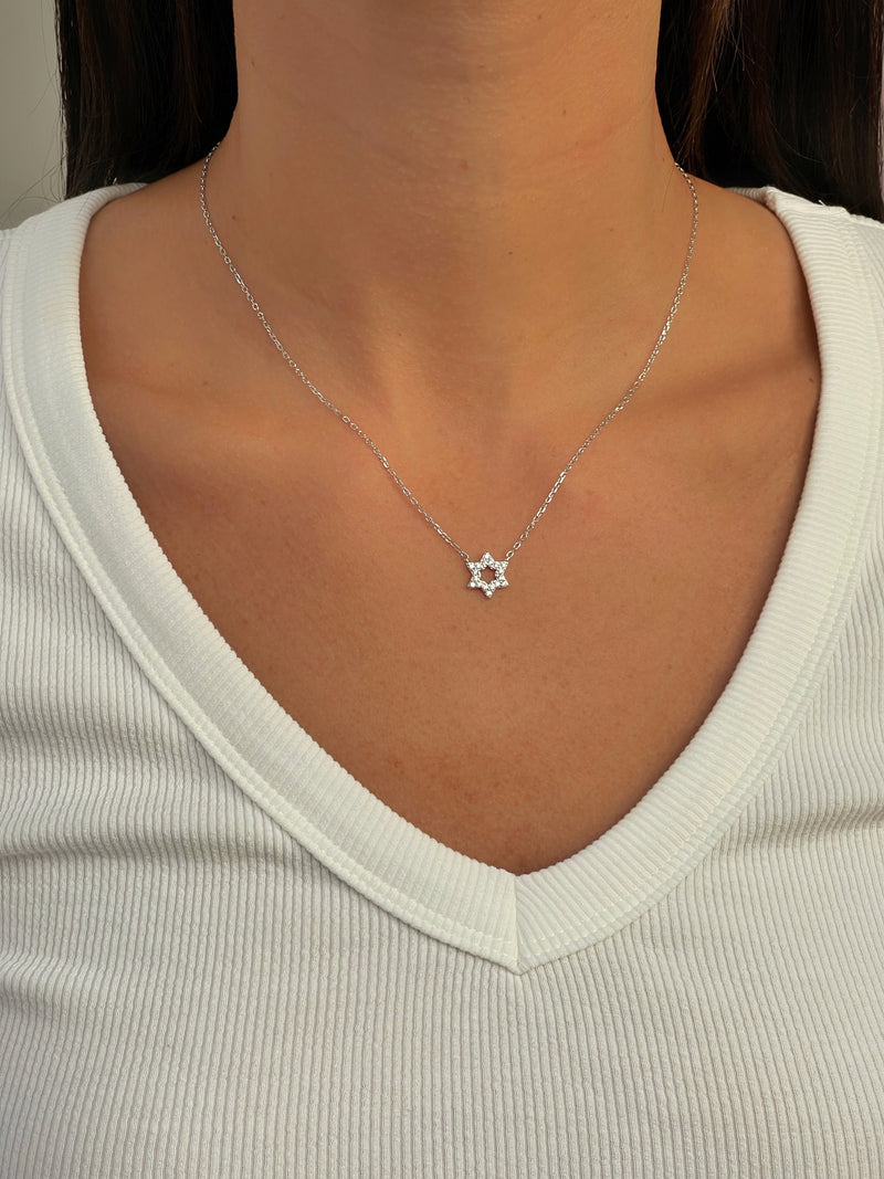 שרשרת מגן דוד משובץ צמודה מכסף אמיתי 925