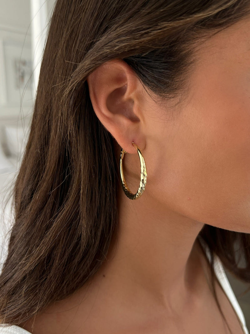 זוג עגילי חישוק לירי מעוטר גדול
