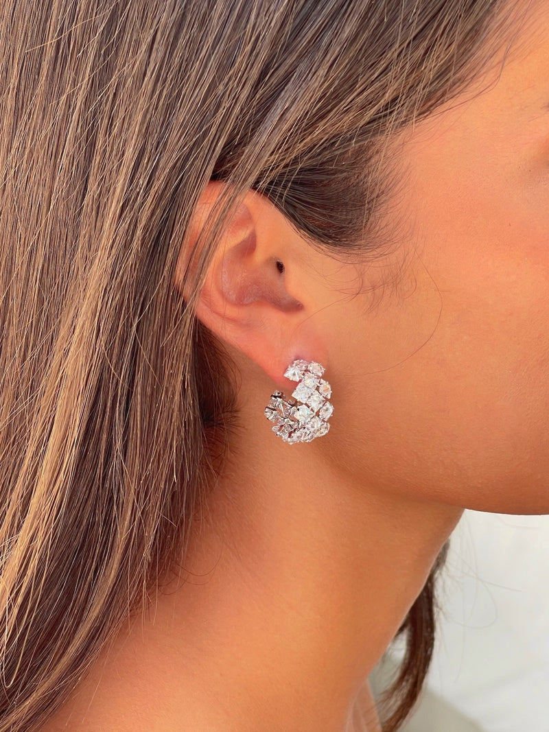זוג עגילי חישוק משובץ אבנים