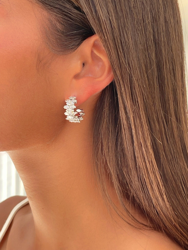 זוג עגילי חישוק משובץ זירקוני מרקיז