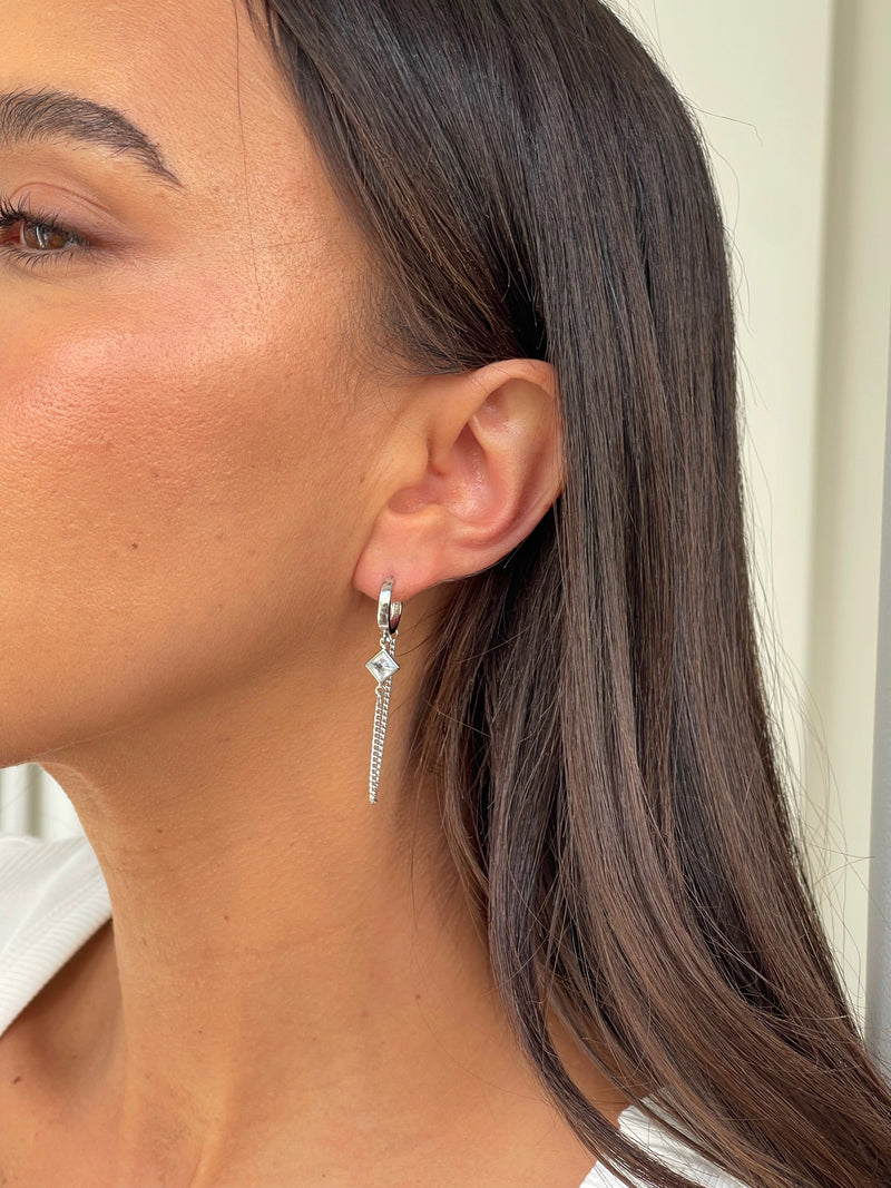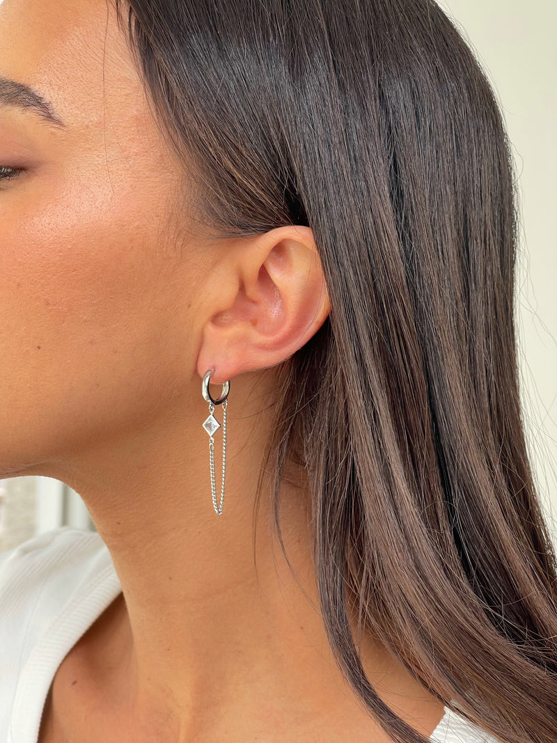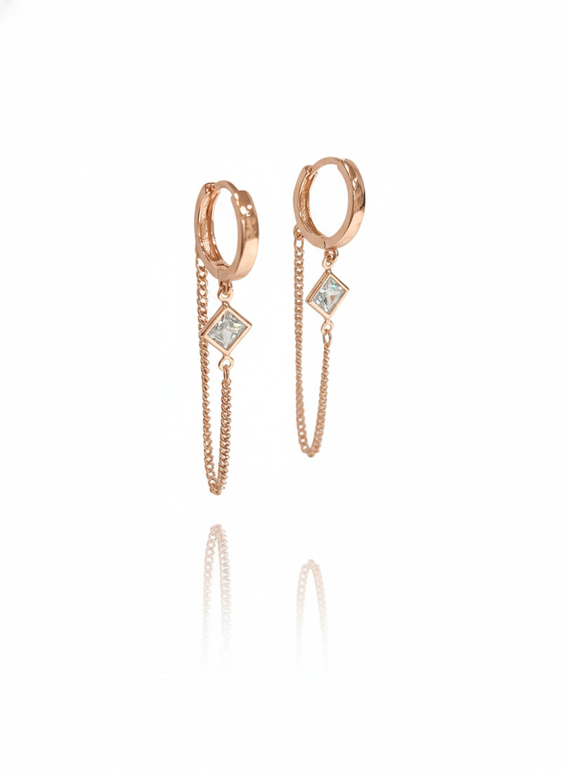 זוג עגילי חישוק ריבוע בשילוב שרשרת