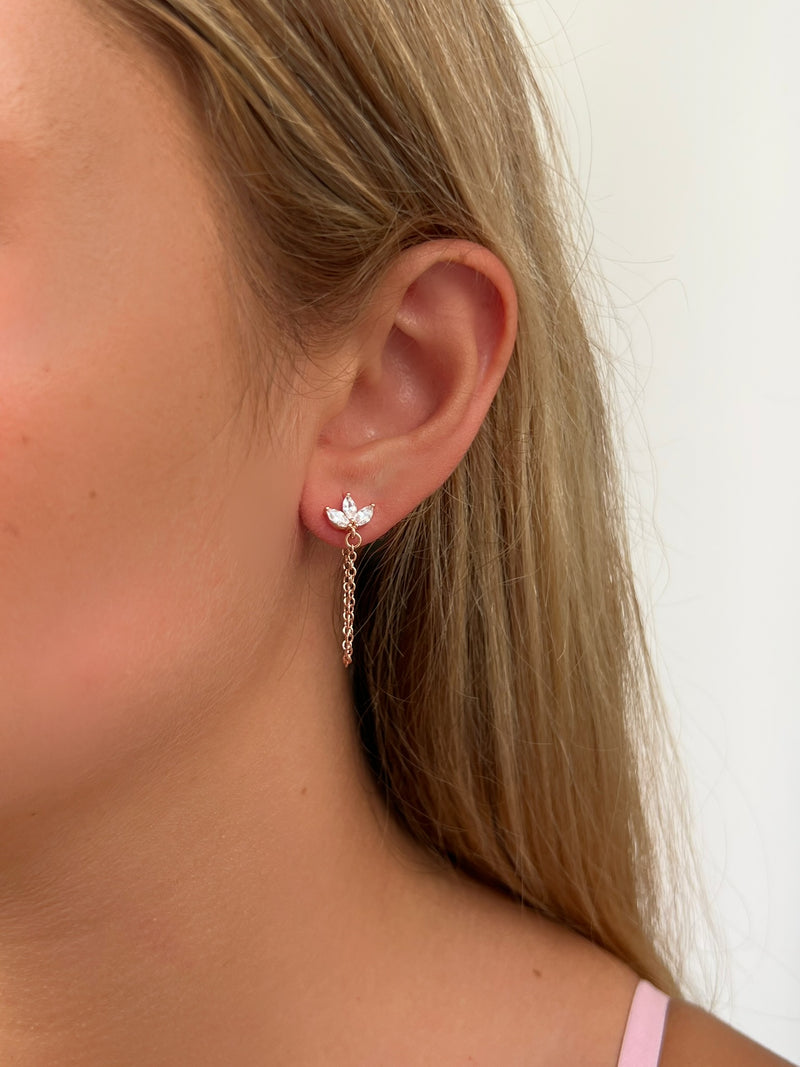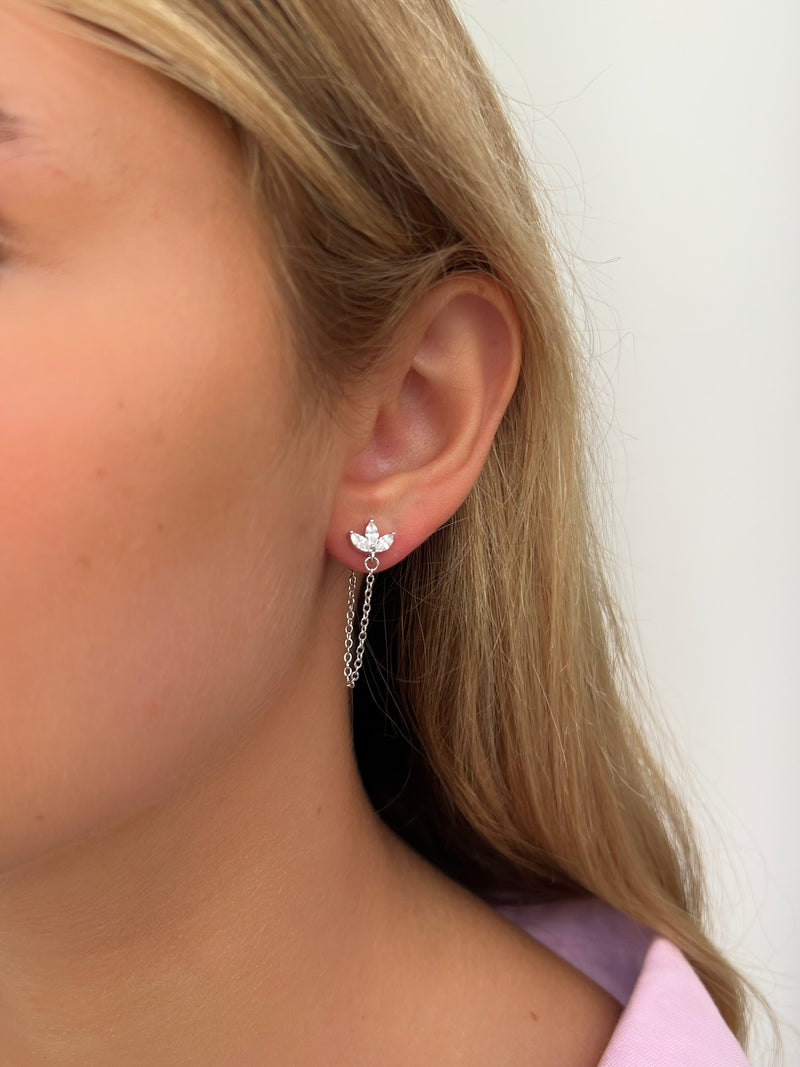 זוג עגילי פרח לוטוס בל משובצים בשילוב שרשרת