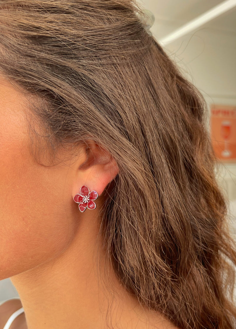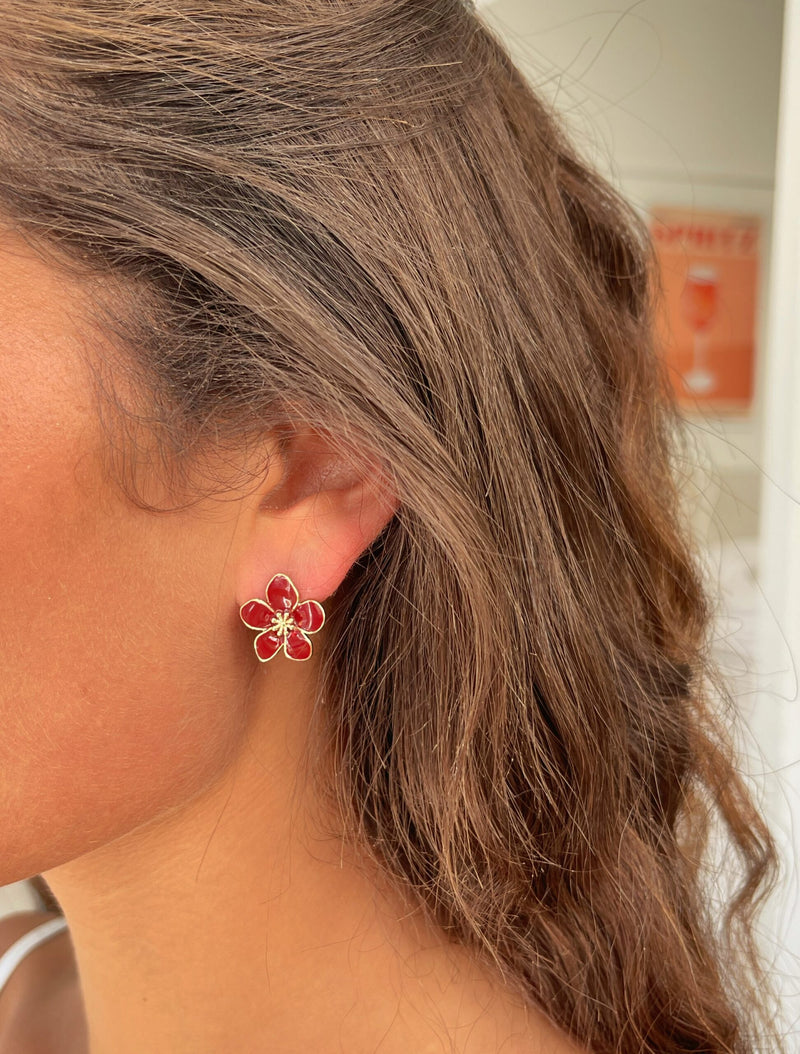 זוג עגילי פרח קיילי מיני בורדו