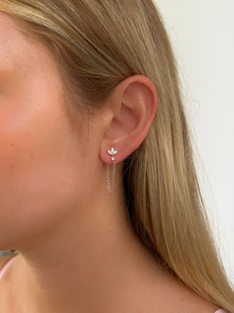 זוג עגילי פרח לוטוס בל שרשרת עדין