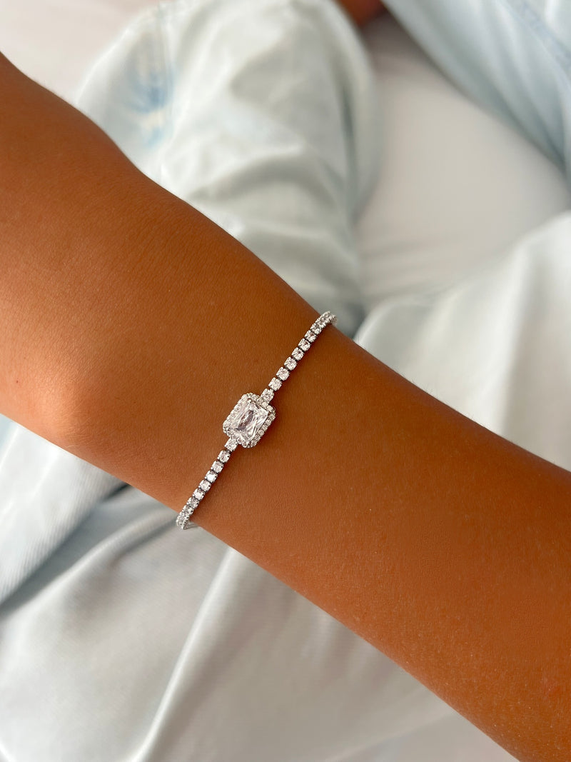 צמיד טניס אבן מלבן משובץ