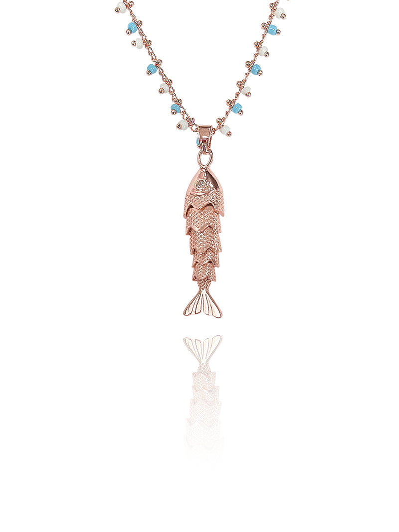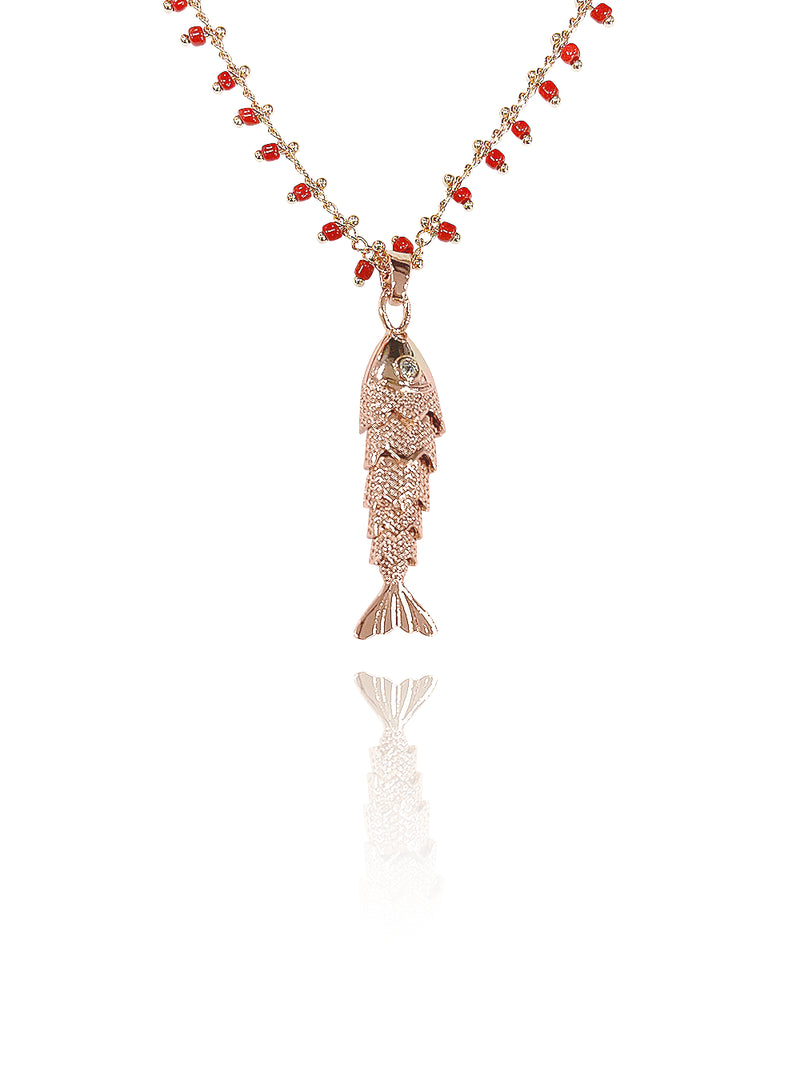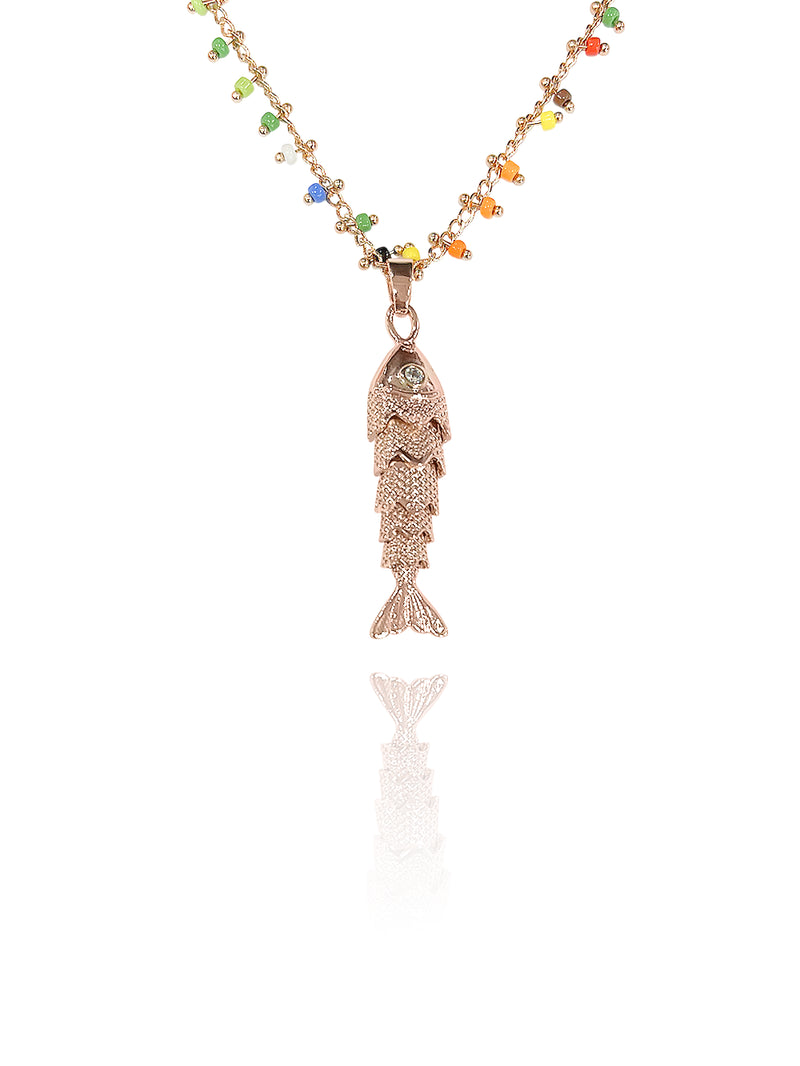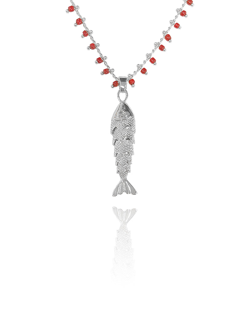 שרשרת עדינה בשילוב חרוזים ותליון דג.