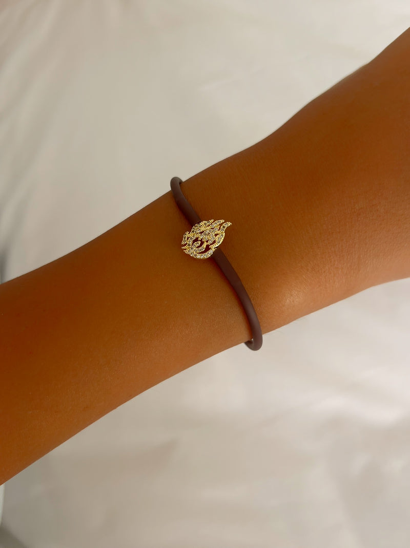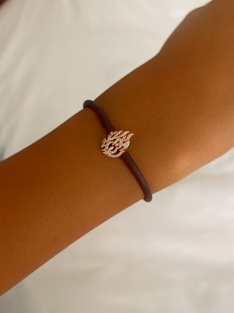 צמיד סילקון בצבע חום בשילוב תליון האש שלי משובץ.
