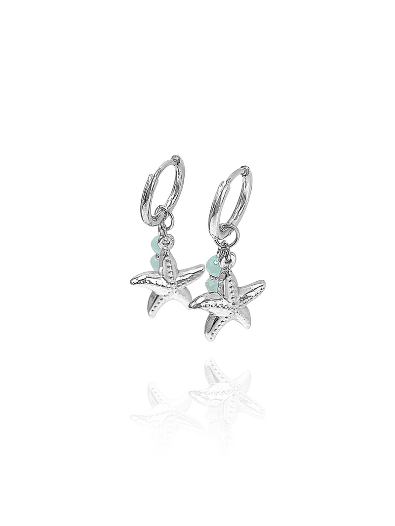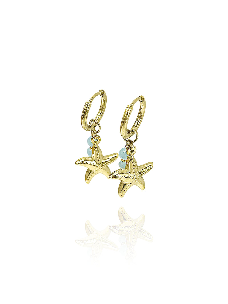 זוג עגילי חישוק כוכב ים בשילוב קריסטלים