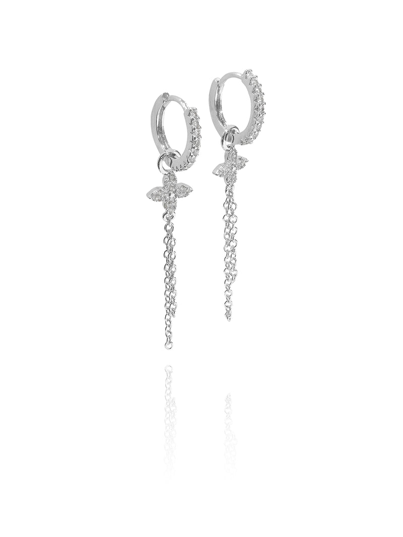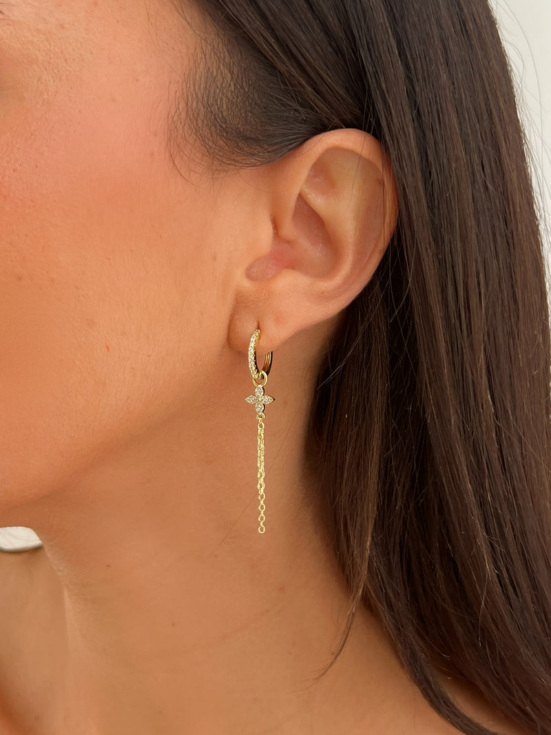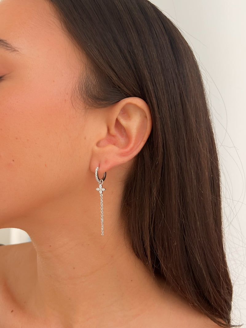 עגיל חישוק בשילוב תליון פרח ושרשרת- מושלם ללוק פרחוני ומיוחד.