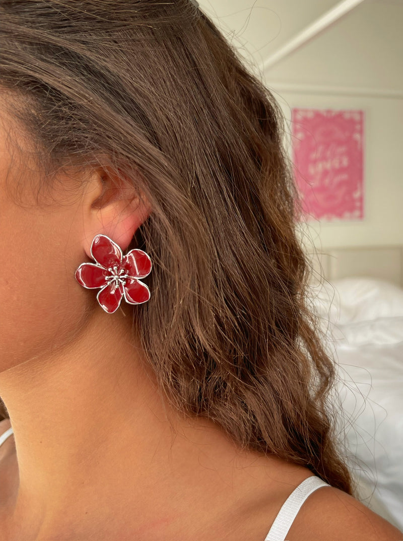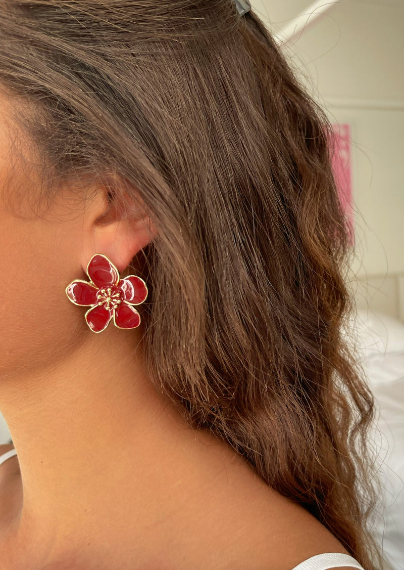 זוג עגילי פרח קיילי בורדו.
