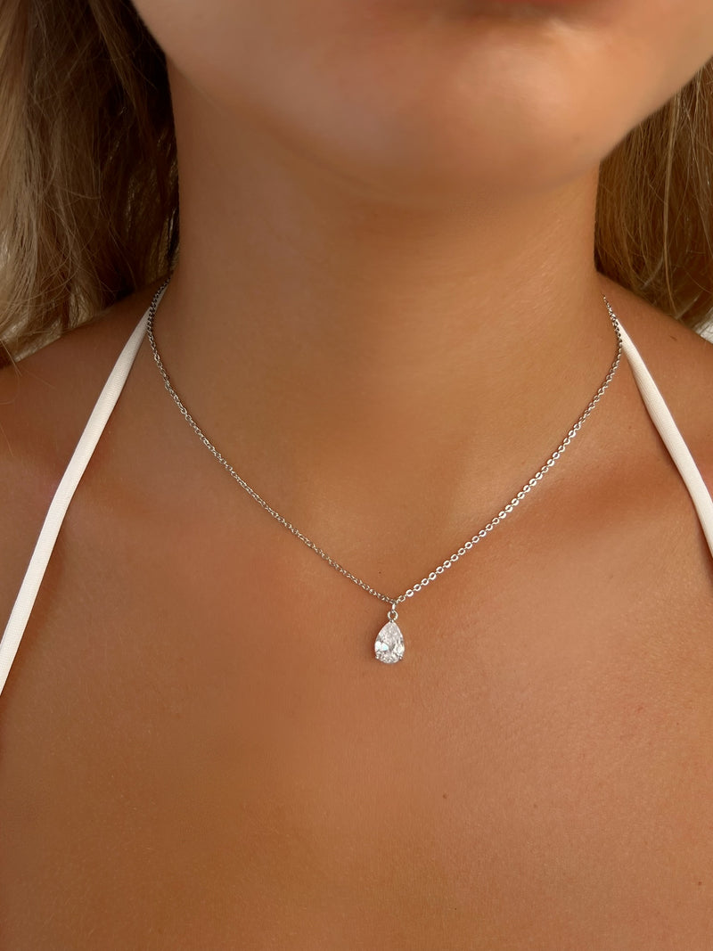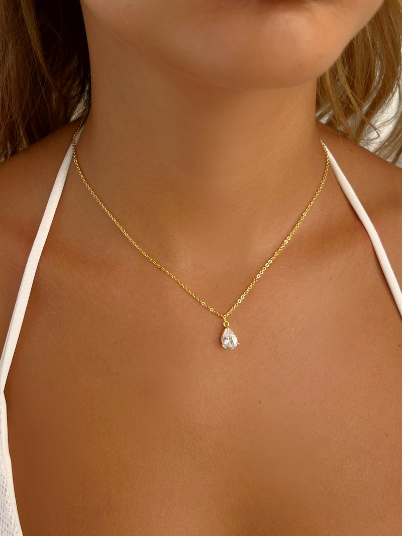 שרשרת בשילוב תליון זירקון בצורת טיפה.