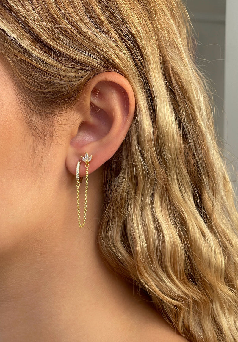 עגיל פרח לוטוס בל בשילוב חישוק מכסף אמיתי 925