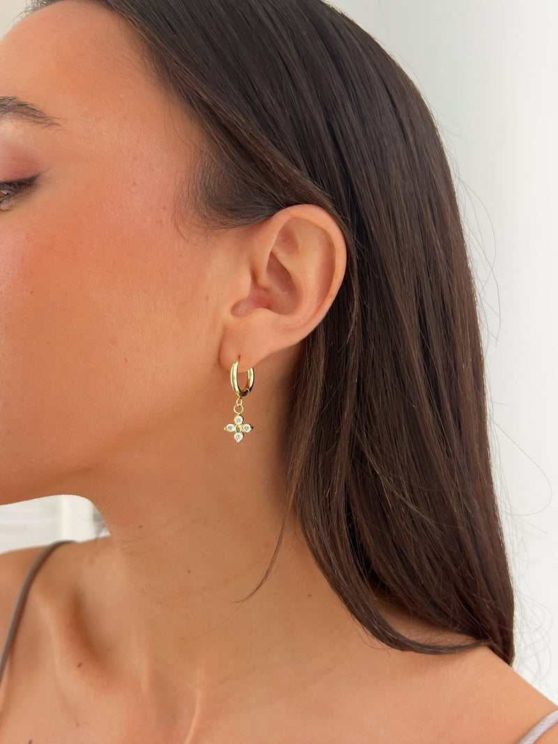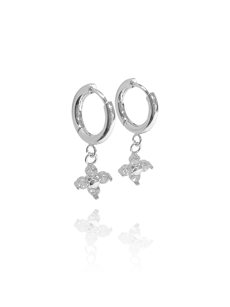 זוג עגילי חישוק בשילוב תליון פרח משובץ.