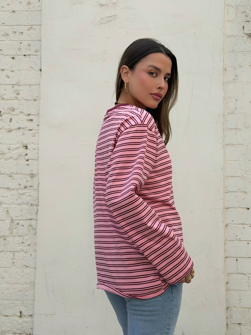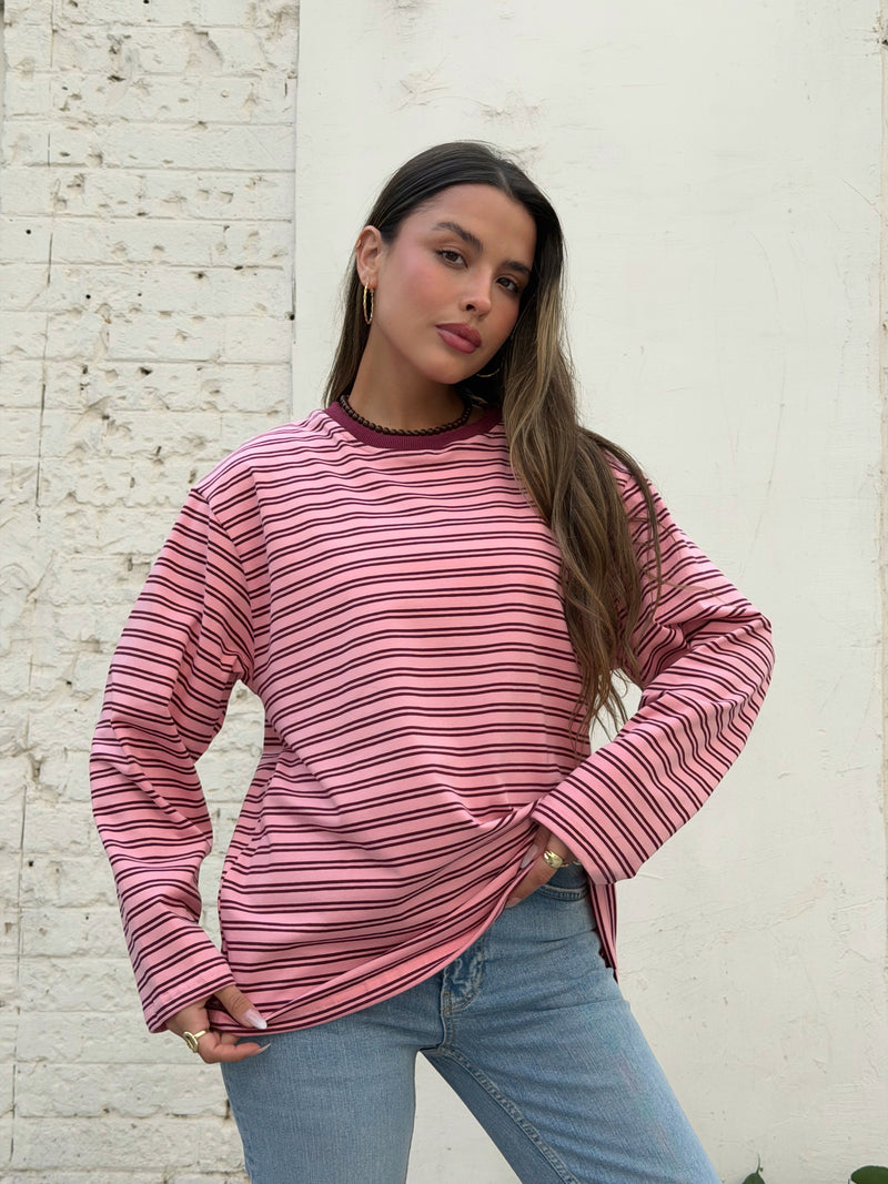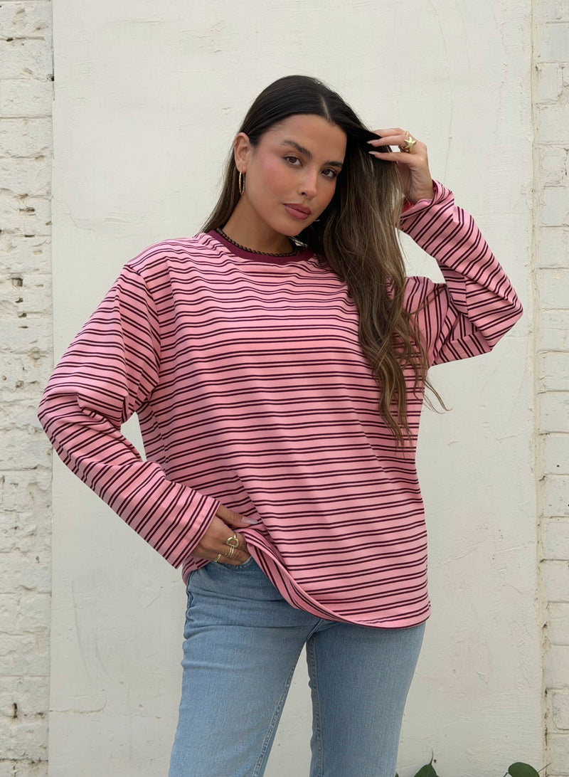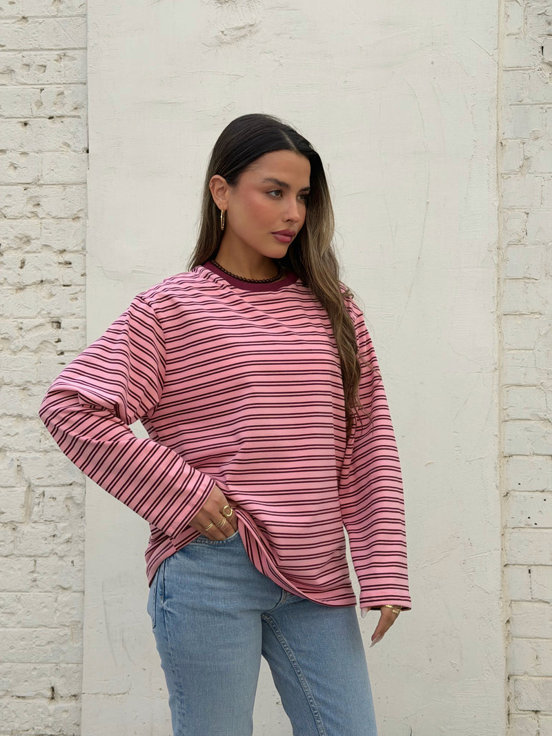 חולצת אוברסייז פסים רומי ורוד בורדו