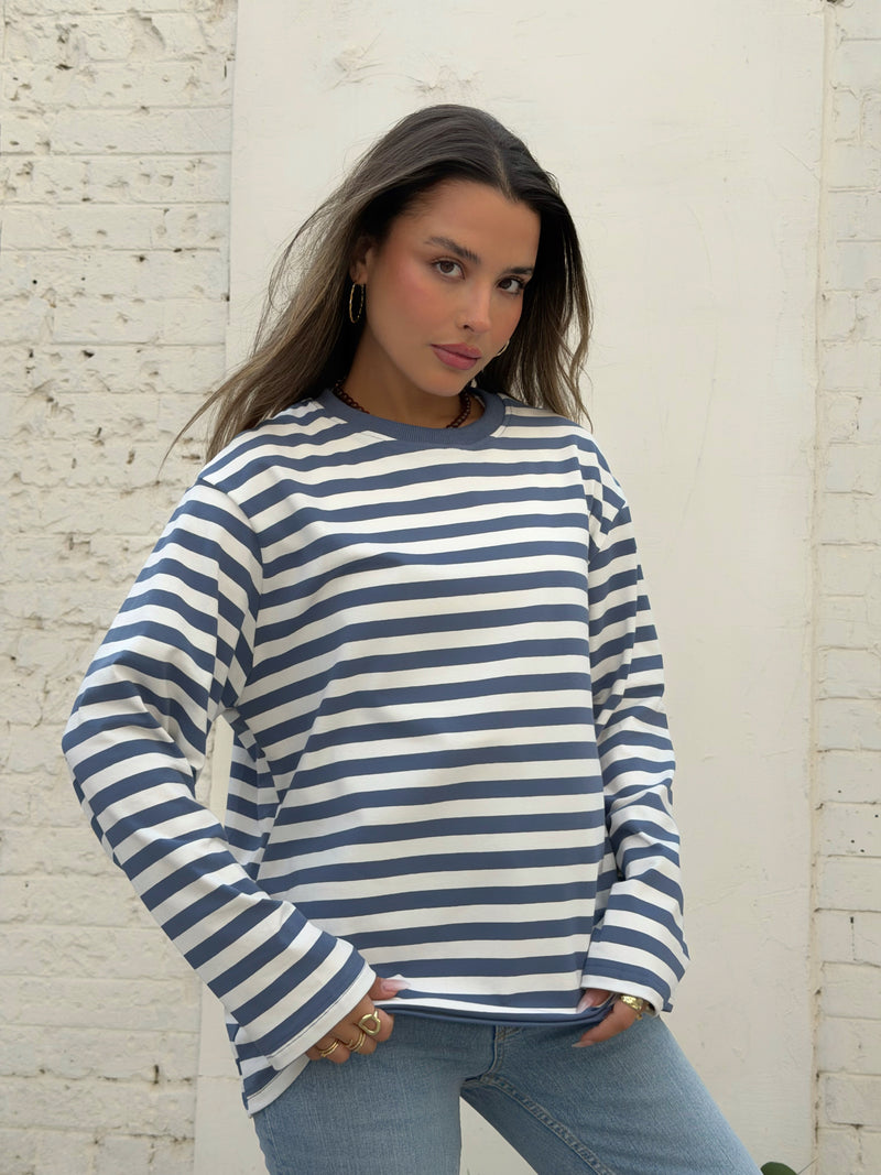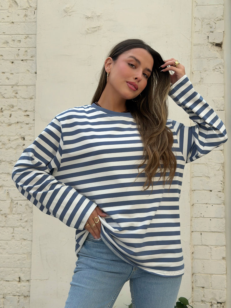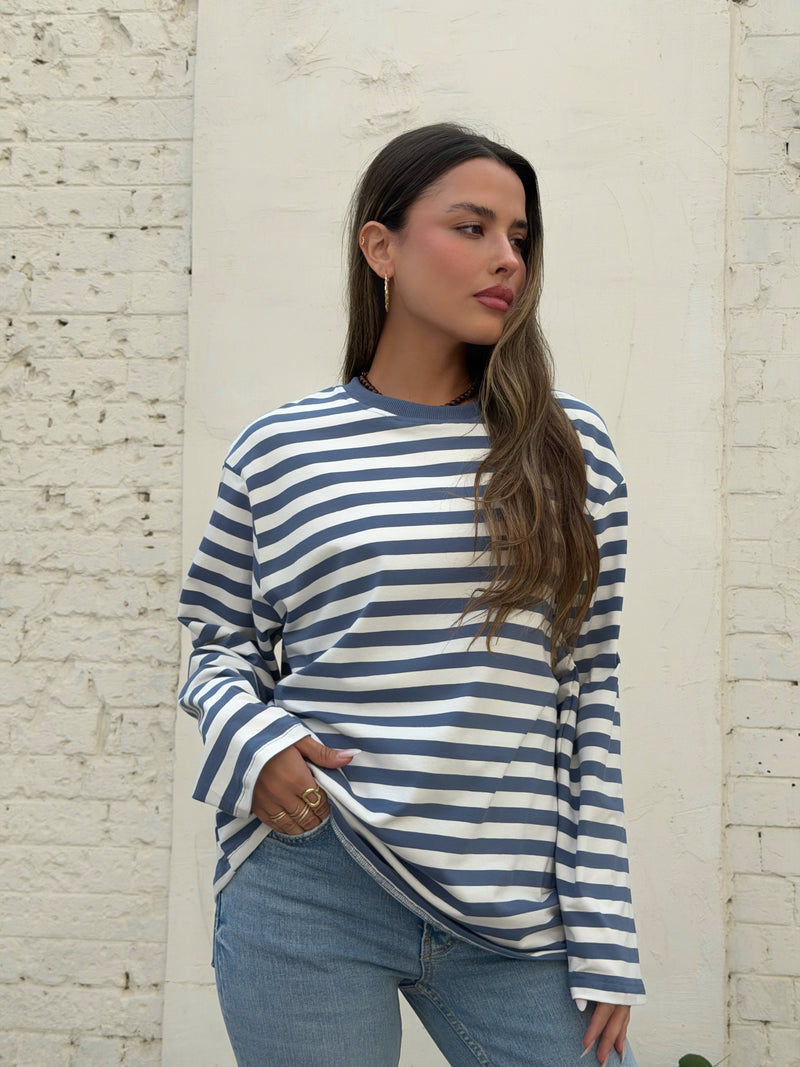 חולצת אוברסייז פסים רומי כחול לבן