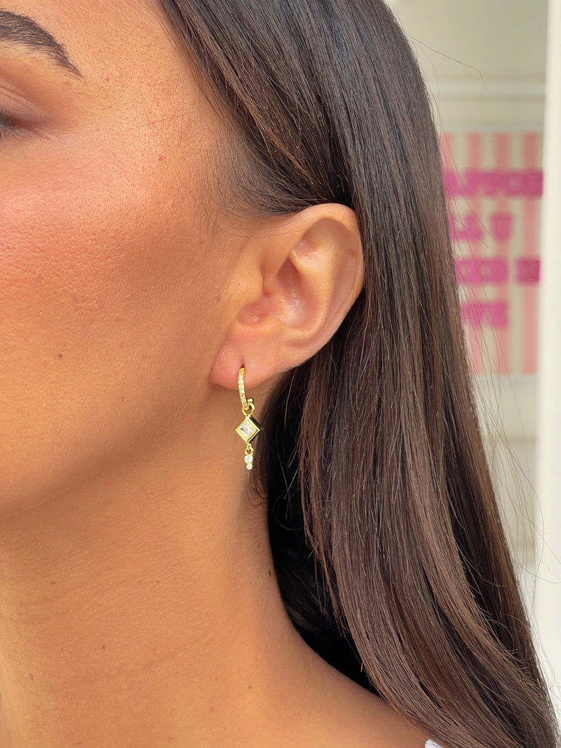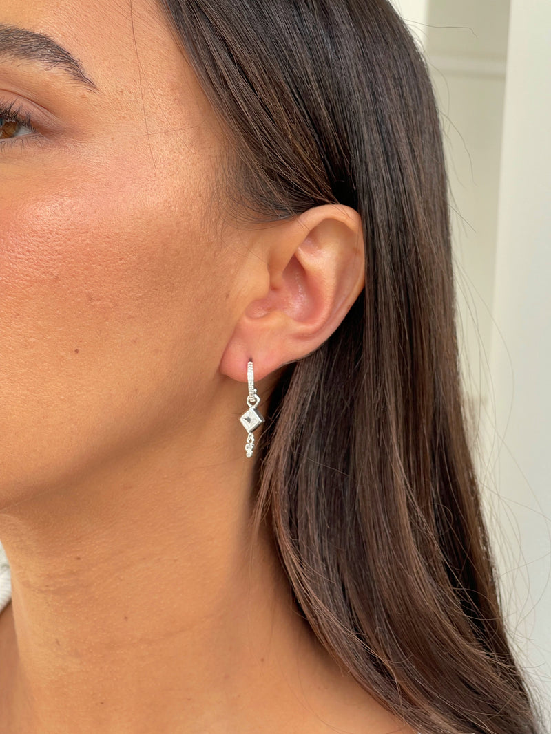 זוג עגילי חישוק זירקון מעוין מכסף אמיתי 925