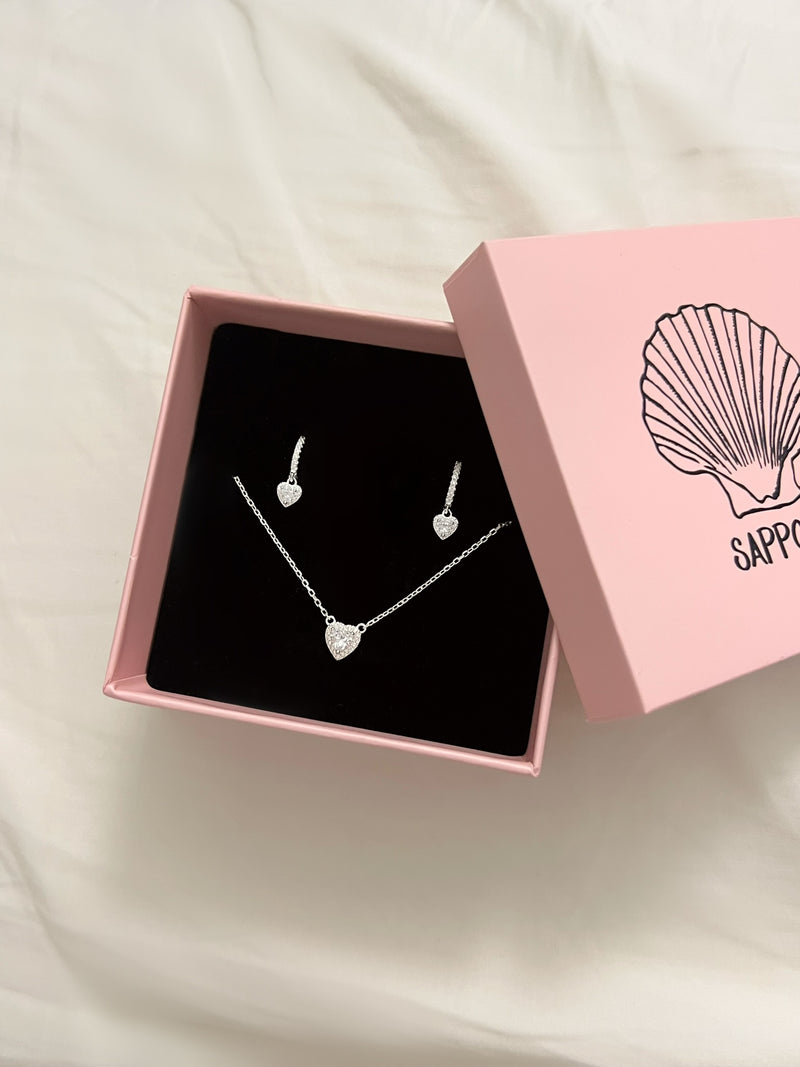 סט אבן זירקון לב משובץ עדין מכסף אמיתי 925