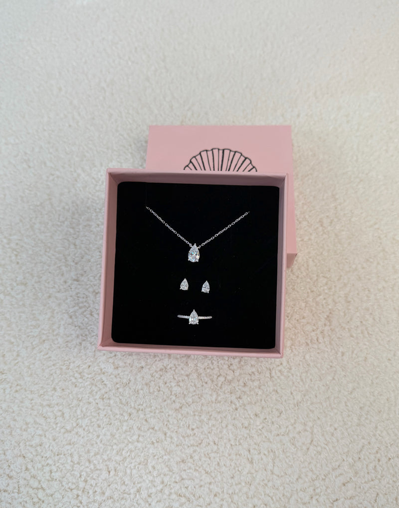 סט זירקון טיפה מכסף אמיתי 925 בכסף