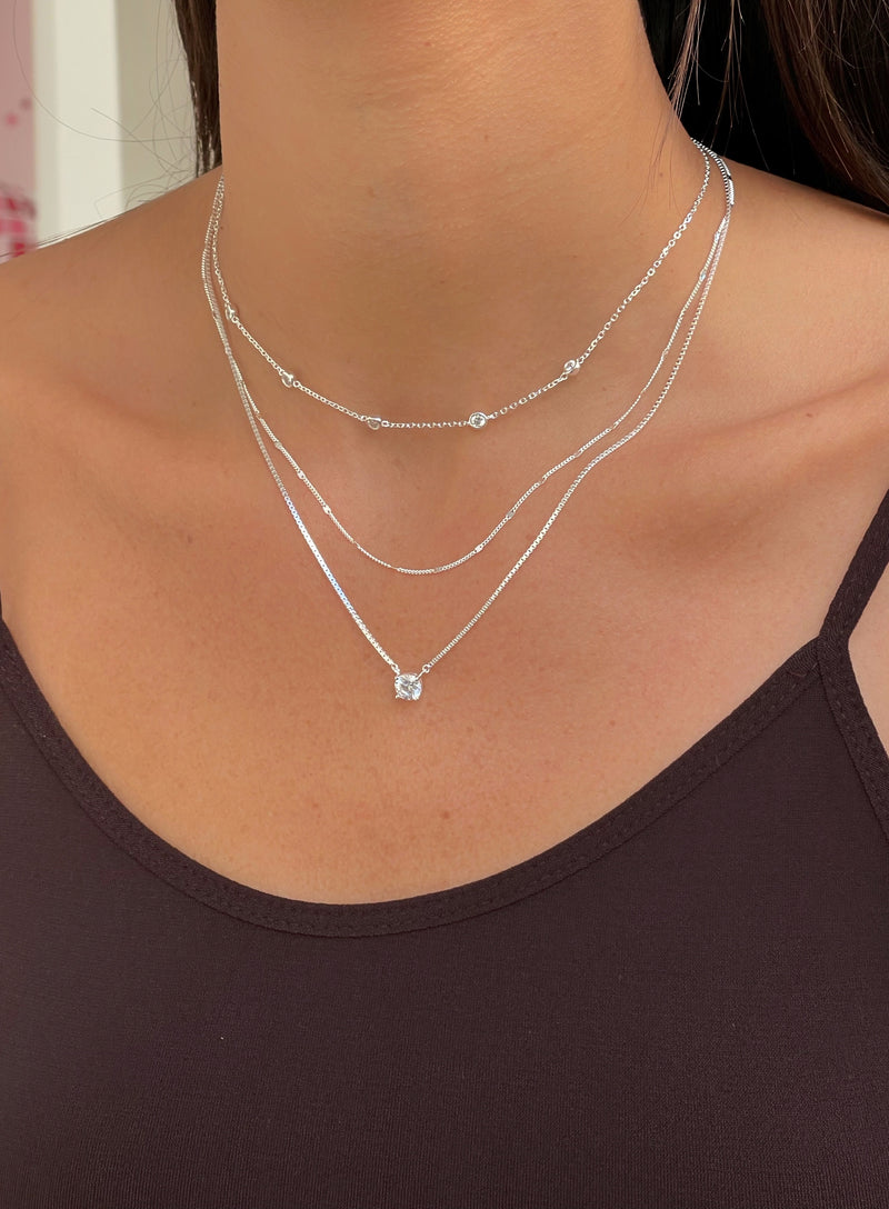 שרשרת זירקון כפולה מכסף אמיתי 925 (ציפוי) :כסף
