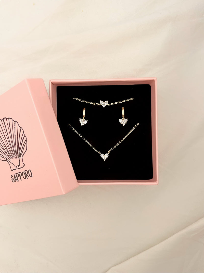 הסט כולל זוג עגילים, שרשרת וצמיד: