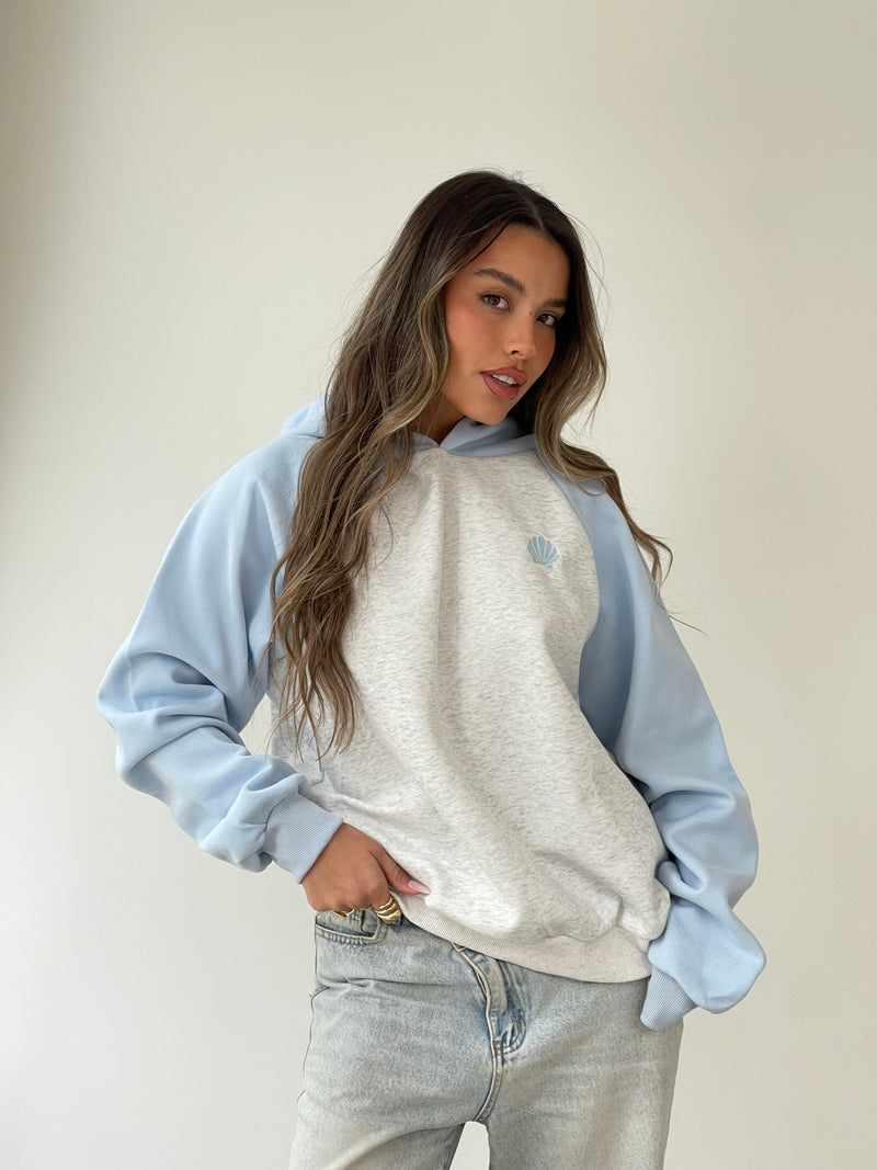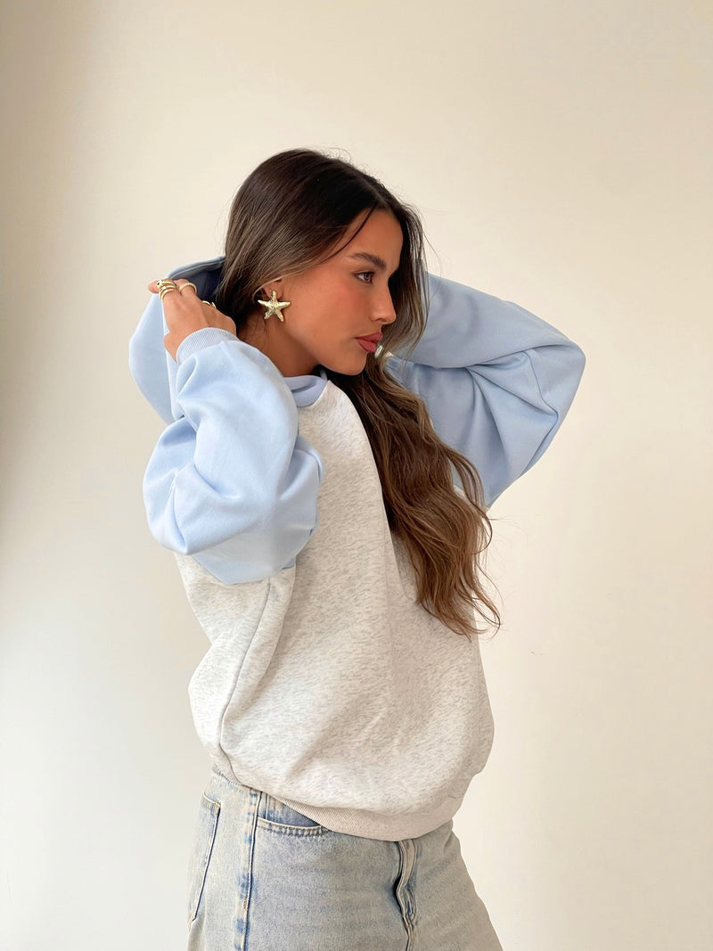 סווטשרט צדפה משולב תכלת אפור