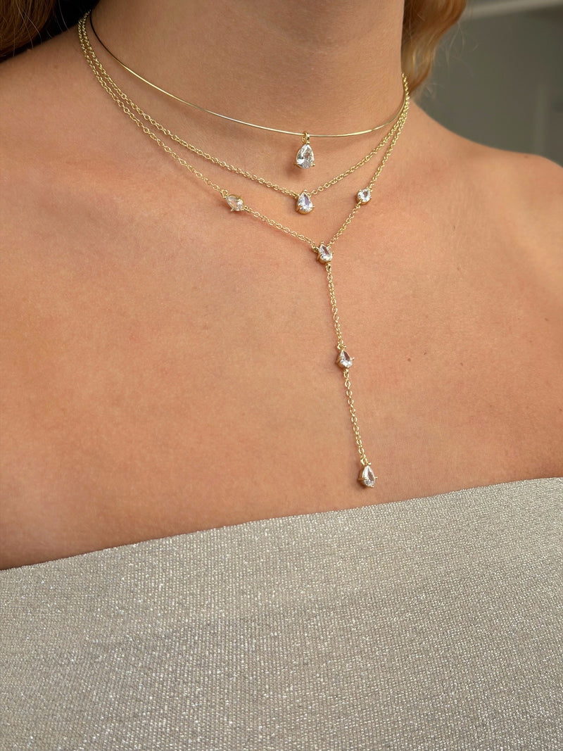 שרשרת קשיחה בשילוב זירקון טיפה עדינה